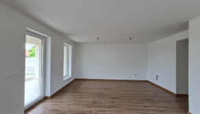 Dispozičné riešenie: vstupná chodba, samostatná toaleta, 3 samostatné nepriechodné izby, kúpeľňa, technická miestnosť, kuchyňa spojená s jedálňou a s obývacou izbou, krytá terasa.