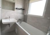 - prerobená kúpeľňa, ktorej súčasťou je vaňa s elegantným umývadlom vrátane skrinky s úložným priestorom a so zrkadlom