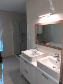 Byt je čiastočne zariadený, nachádza sa na I. prvom poschodí z troj bytovky. Kompletne a kvalitne obnovený. Samostatne kúrenie podlahove elektricke so samostatnými termostatmi. K bytu patrí veľká terasa 25m2