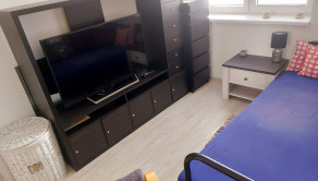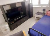V druhej izbe je jedno posteľ. TV. spoločná kúpelňa a toaleta, kuchyňa, obývačka.